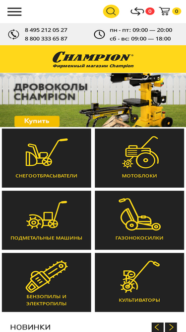 профильный магазин по продаже техники марки champion. продажа готовой продукции, запчасти.