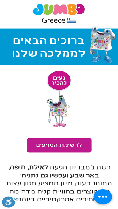 69%ג'מבו- רשת הסטוק הגדולה מיוון המציעה מוצרים במגוון תחומים ובמחירים עכשיו בישראל! בג'מבו תוכלו למצוא מגוון רחב של מוצרים בינהם: כלים ונוי לבית, ביגוד ואביזרים, צעצועים וכלי כתיבה מוצרי תינוקות, מוצרי ניקיון, טואלטיקה ועוד. בואו לינות מחווית קניה יחודית ומוצרים שיגרמו לכם להתאהב.