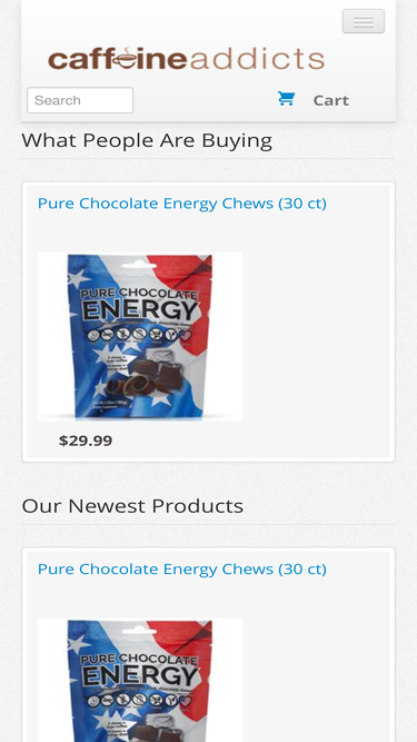 67%Description Pure Chocolate Energy is an all-natural dark chocolate energy chew. Each chew contains 50 mg of natural caffeine, green tea, vitamin B-12, and acai berry to help you get that extra natural boost of energy that you need to power you through your day. They are also Kosher, vegan, non-gmo, dairy free, soy free and made right here in the USA! And with all of that they still taste fabulous! Additional info 2 Chews = Large Coffee 4 Chews = Energy Drink