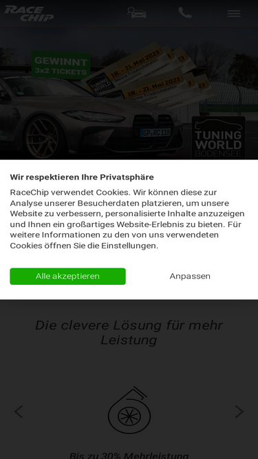 76%bis zu 30 % mehr ps und nm für maximalen fahrspaß mit der neuen chiptuning generation von racechip. gönnen sie sich das upgrade für ihr auto. deutsche tuningqualität vom marktführer. ausgezeichneter kundenservice. schneller einbau. 30 tage geld zurück garantie.