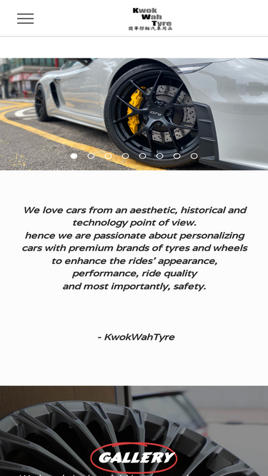 Kwok Wah Tyre is your No.1 tyre & wheel specialist in Hong Kong. We specialize in tyres for executive cars, luxury sedans, grand tourers, sports cars, super cars, SUVs and etc.