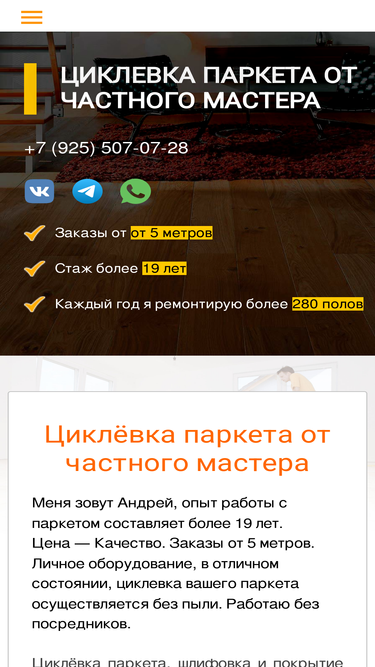 100%недорогие и качественные услуги по циклевке паркета и покрытию лаком, без пыли от частного мастера андрея. паркетные работы в москве и московской области. заказы от 5 метров. стаж 17 лет