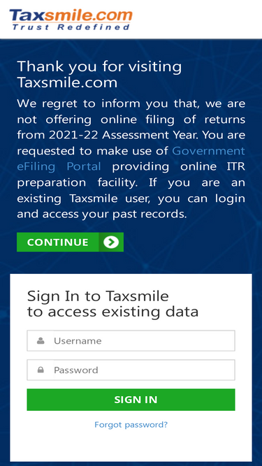 94%taxsmile is an efiling portal to prepare and efile income tax return online. taxsmile helps individuals to file their income tax return in an easy, convenient and secure way.