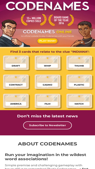 32%The classic Codenames formula transformed into a cooperative two-player challenge. Team up to track down secret agents without triggering the assassin.