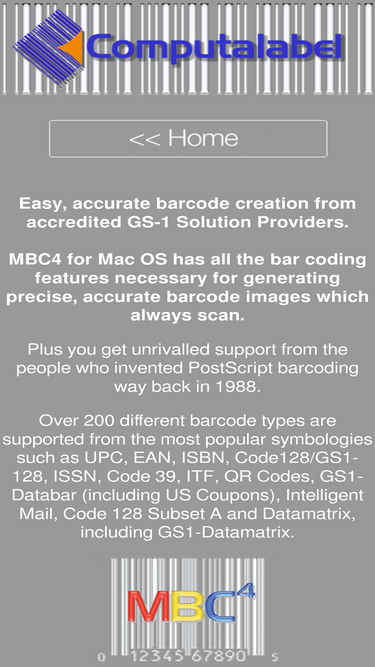58%bar code generation software. mbc4 for mac os x. wbc4 for windows vista and xp. support for qr codes, upc, ean, isbn, issn, code 39, itf and code 128 bar code symbologies. barcode fonts, windows and apple-compatible barcode readers and verifiers.
