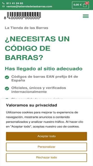 76%Para vender en una tienda o a través de Internet necesitas que todos tus productos cuenten con un código de barras