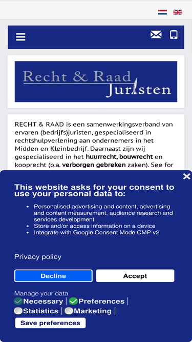100%Rechtshulp voor ondernemers RECHT & RAAD is een samenwerkingsverband van ervaren (bedrijfs)juristen, gespecialiseerd in rechtshulpverlening aan ondernemers...
