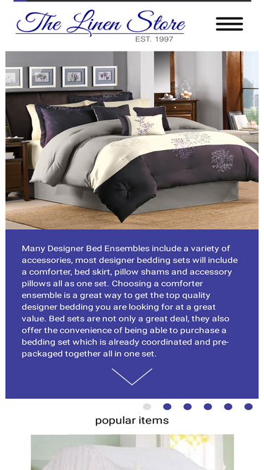 100%devoted to your luxurious comfort and style with dreamy comforters, pillows, featherbeds, blankets, sheets, mattress pads, towels and sleepwear.