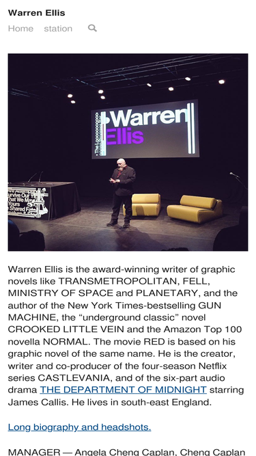 96%Warren Ellis is the award-winning writer of graphic novels like TRANSMETROPOLITAN, FELL, MINISTRY OF SPACE and PLANETARY, and the author of the New