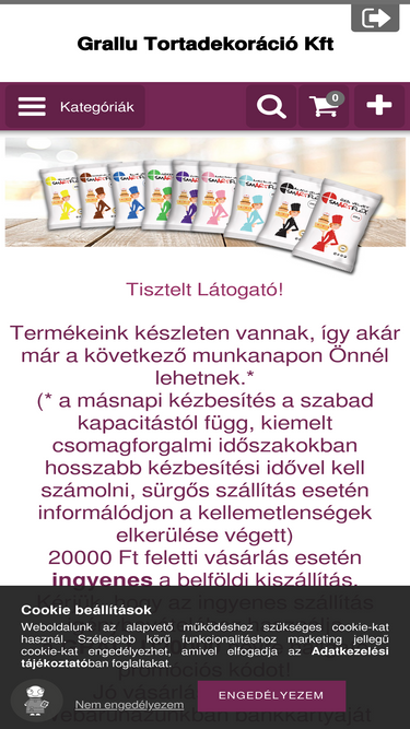 76%Információk, Cukrászkellék és alapanyag webáruház. Rendelj online! Egyszerű, kényelmes, gyors. Akár ingyenes szállítással. Bankkártyás fizetési lehetőséggel.