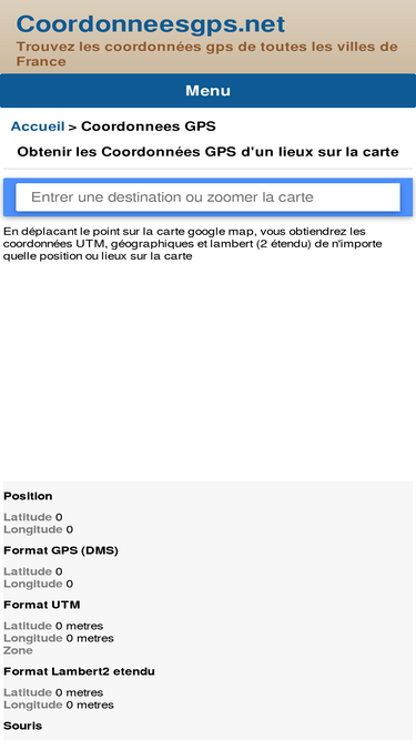 trouvez facilement la longitude, la latitude et les coordonnées gps de l'endroit ou de l'adresse au choix à une latitude et une longitude.