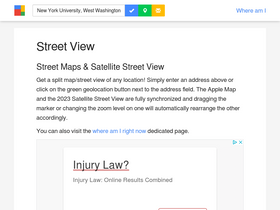 76%Where am I right now? See at a glance 2 maps centered on your exact location: a classic road map and a satellite street view of where you are.