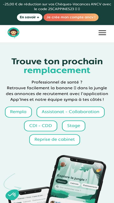 83%Retrouve toutes les annonces et postule rapidement via l'application App'Ines - l'App n°1 pour l'emploi des professionnels de santé