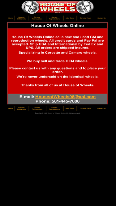 58%house of wheels online sells new and used factory and reproduction wheels. specializing in the following: bmw wheels, mustang, f-150, expedition wheels, corvette wheels, camaro, escalade, tahoe wheels, retail and wholesale. also buying, selling and trading oem and reproduction wheels.