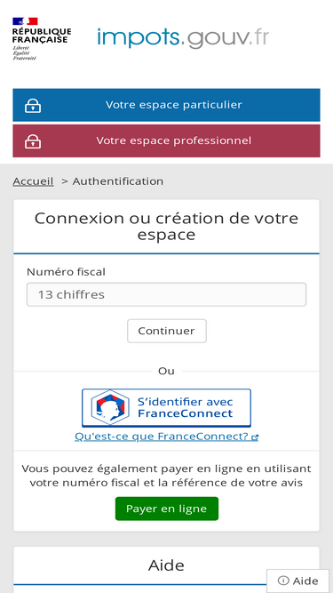 connexion à l'aide de vos identifiants d'impots.gouv.fr