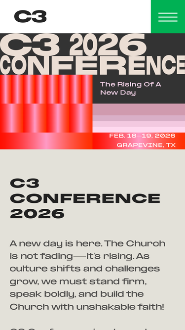 100%Experimenta el poder de las cosas más grandes en la Conferencia C3, ¡un evento de 2 días para líderes que cambian el mundo! Únase a nosotros para transformar la cultura y promover la iglesia local.