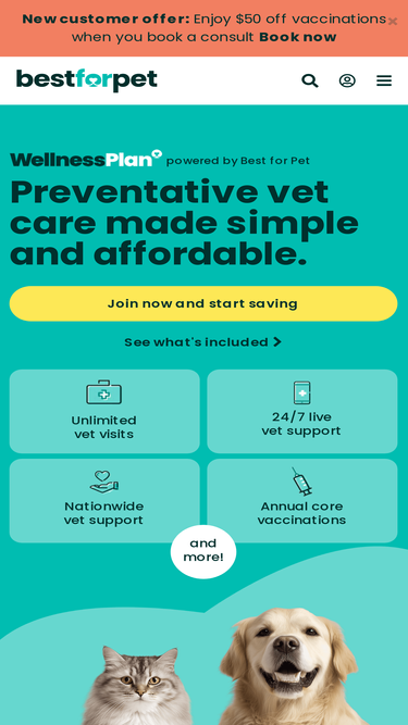 85%Remove the financial stress and complexity of providing your pet the best care with a Best for Pet Plan. Find out how much money you'll save.
