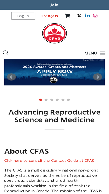 74%the cfas is a multidisciplinary national non-profit society that serves as the voice of reproductive specialists, scientists, and allied health professionals working in the field of assisted reproduction in canada. the mission of the cfas is to responsibly advance reproductive science and medicine in canada through leadership, research and guidance.