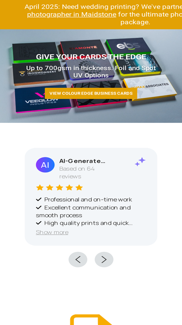 We are a print shop based in Maidstone that specializes in creating unique and professional business cards for our clients. We offer a wide range of options to make your card stand out, including foil, coloured edges, and spot UV. Our team is dedicated to providing high-quality printing and excellent customer service to ensure that your business cards make the perfect impression. Although based in Kent, we also regularly service clients throughout London and the UK.