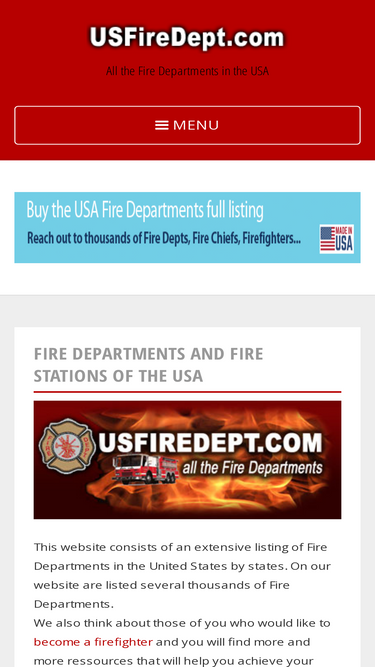 all the fire departments of the usa listed and organized by states and counties. information about the location, contact and organization of each fire department and fire station with the number of career firefighters, volunteer firefighters.