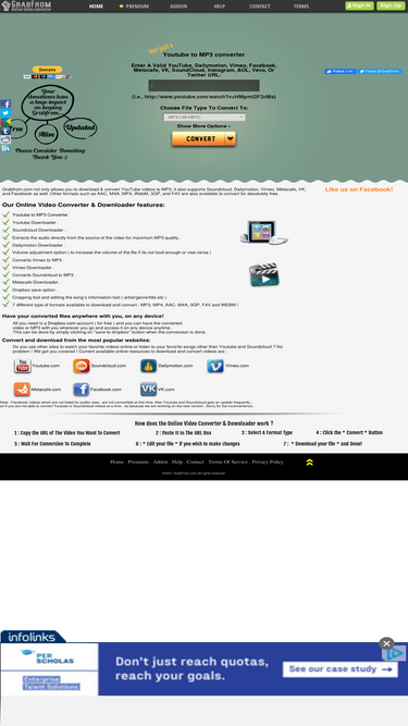 download and convert videos online from youtube, soundcloud, dailymotion, vimeo etc, to mp3, mp4, f4v formats with highest quality for absolutely free.