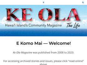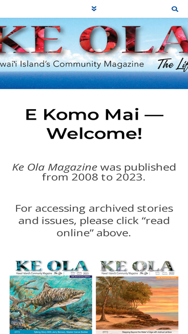 58%Ke Ola (The Life) is Hawai‘i Island’s only cultural and lifestyle magazine. Published bimonthly and locally-owned since 2008, it features inspiring stories about the art, food, land, music, and people of Hawai‘i Island.