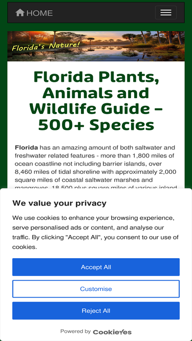 58%florida's plants and animals. over 500 species of trees, shrubs, wildflowers, birds, reptiles, amphibians, mammals, and insects with pictures and descriptions.
