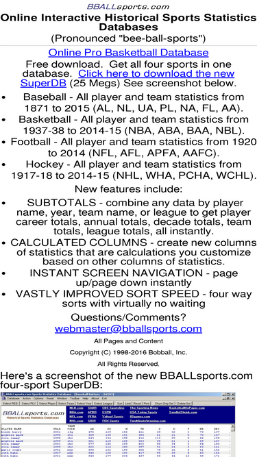databasesports.com web sitesinin Şubat 2026 için en popüler 5 rakibi: bballsports.com, sports-reference.com, stats.com, baseball-reference.com ve diğerleri.