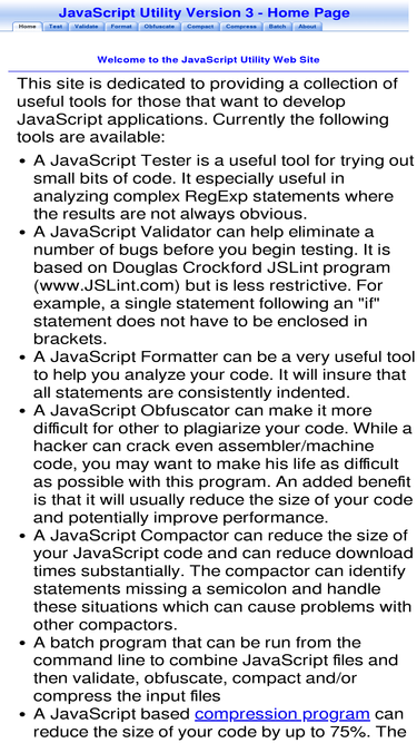 96%free javascript utilities for testing, validation, compaction, and compression of javascript code