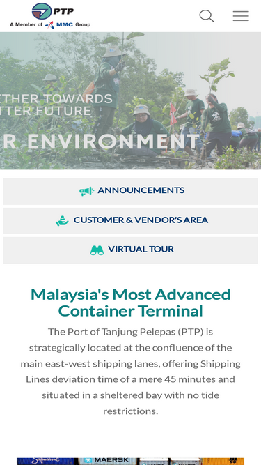 88%malaysia’s most advanced container terminal, the port of tanjung pelepas (ptp) is strategically located at the confluence of the main east-west shipping lanes, offering shipping lines minimal deviation time of 45 minutes.