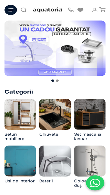 în magazinul online aquatoria.ro puteți găsi obiecte sanitare și mobilier pentru baie, pentru toate preferințele și necesitățile. pentru camera de baie - oglinzi, dulapuri, baze mobilier, lavoare, chiuvete. pentru bucătărie - chiuvete și baterii. o paletă variată de culori și texturi, gamă largă de mărimi.