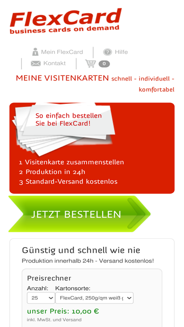 92%Professionelle Visitenkarten in 3 Schritten. Design-Galerie, viele Kartone, Produktion in 24h