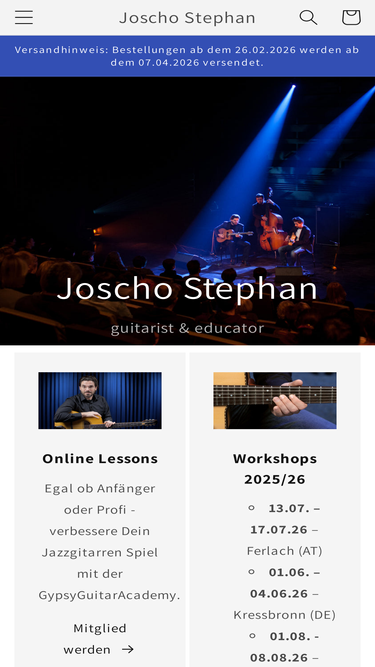 97%Die Kombination aus Gypsy Swing und Klezmer, aus Stephan und Eisel, garantiert Genuss pur und lässt staunen über die kommunikative Energie einer Musik, die den Zuhörer unwiderstehlich in den Sog dieser einzigartigen Stilmelange hineinzieht. Unbändige Spielfreude, tiefgründige Melancholie und überschäumende Lebenslust, gespickt mit einer Vielzahl virtuoser Improvisationen – hier treffen sich zwei, die einander und ihrem Publikum ungemein viel zu sagen haben.Joscho Stephan: SologuitarGünter Stephan: RhythmguitarMax Schaaf: Double BassHelmut Eisel: Clarinet