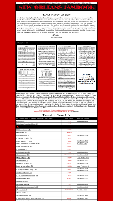 download lead sheets and chords to almost 1000 good old jazz tunes.