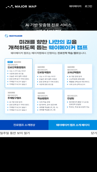 100%메이저맵으로 내 적성에 맞는 학과를 추천받고, 메이저맵만의 다양한 학과, 대학소식과 콘텐츠를 탐색해보세요.