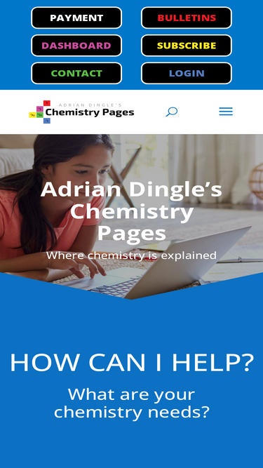 main menu of a site aimed to help advanced level chemistry students to understand chemistry