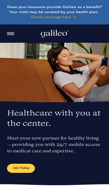 72%galileo: healthcare with you at the center. meet your new partner for healthy living - providing you with 24/7 mobile access to medical care and expertise.