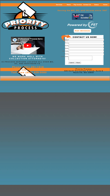 98%priority process service serves legal documents, subpoenas and file papers directly with the appropriate court plus skip tracing. serving maryland, washington d.c. and northern virginia