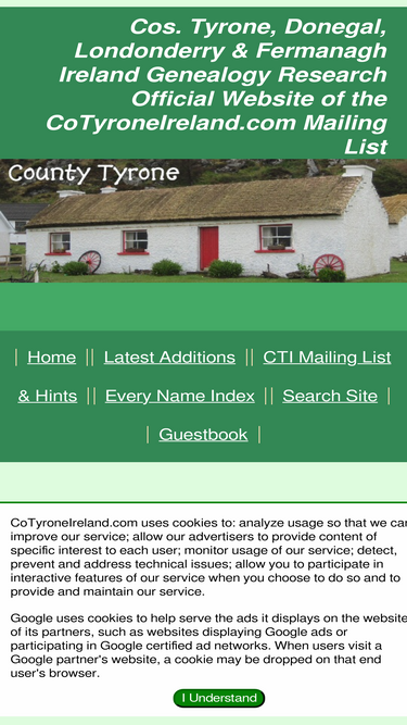 100%welcome to the premier website & research tool for counties tyrone, donegal, derry/londonderry & fermanagh genealogy thank you for visiting - jim mckane, webmaster
