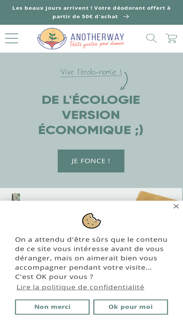 98%Agissez aujourd'hui pour un monde meilleur Demain. Anotherway propose des alternatives simples et écologiques à mettre en place au quotidien. Stop aux produits jetables, toxiques et polluants.