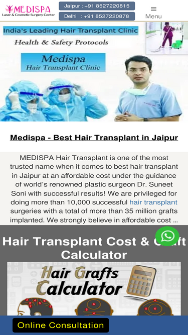 86%Get online consultation with Dr. Suneet Soni then fill query form to get the appointment for consultation at Medispa hair transplant clinic