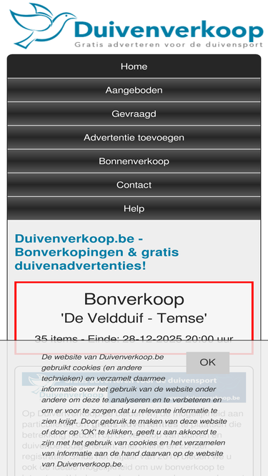 87%duivenverkoop.be, duiven te koop! gratis adverteren, aanbiedingen, zoekertjes, bonverkoop...