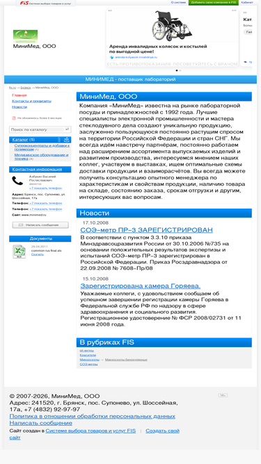 компания минимед, ооо (брянск) в системе выбора товаров и услуг fis.ru - контакты, цены на товары и услуги, прайс-лист, новости.