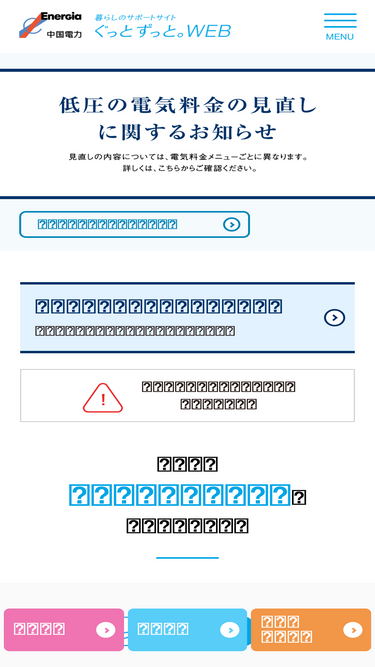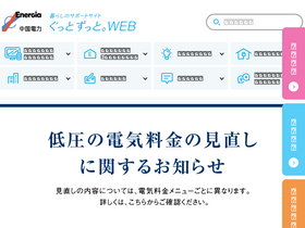 81%中国電力のホームページ。個人のお客さま、法人のお客さま、株主・投資家の方に向けて、電気料金やご契約に関する情報等を掲載しています。