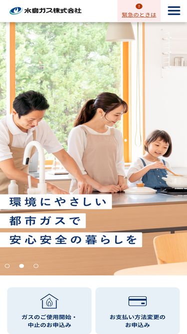 86%水島ガスは安全・保安について、ご家庭のお客さま、業務用のお客さま、会社情報についてご紹介をしております。