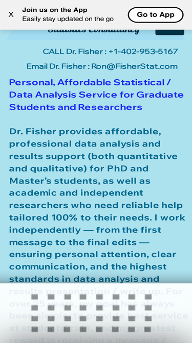 Get expert help from Dr. Fisher, a professional statistical consultant, to analyse data and results for your PhD dissertation or Master’s thesis or Manuscript or high impact Journal Paper. Affordable, reliable, and high-quality statistical consulting for students and researchers