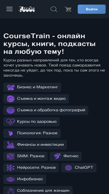 Листайте все курсы CourseTrain. Найдите тот курс, который поможет потратить Ваше время с максимальной пользой для саморазвития.