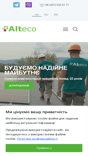 39%Компанія Alteco - це комплексне впровадження проектів Clean Energy. Ми здійснюємо консалтинг, EPC-підряд, експлуатацію та сервіс об’єктів альтернативної енергетики