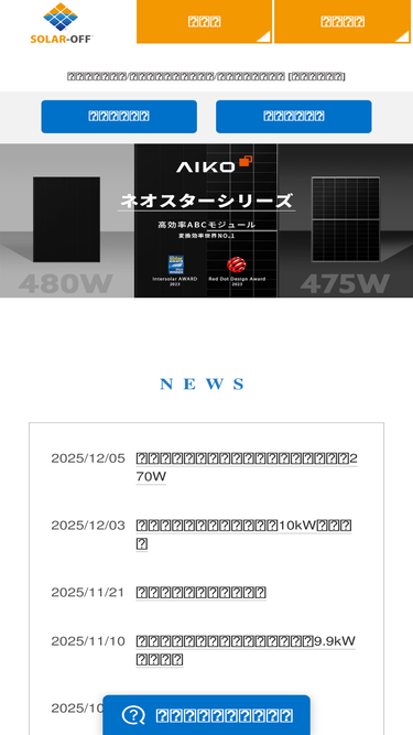 パワーコンディショナーや太陽光パネルなら太陽光部材専門店のソーラーオフ(solar-off)へ。太陽光パネルやパワコンなどの太陽光部材を全品送料無料で販売しています。施工店様・販売業者様~個人のお客様まで部材費のコストダウンや最適なプランをご提案します。