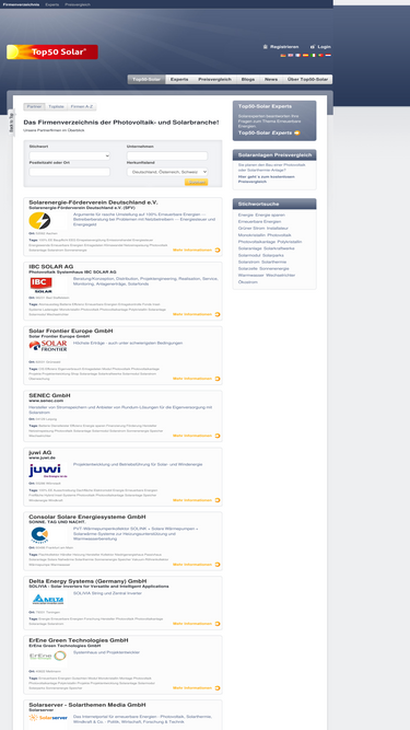 top50-solar präsentiert ihnen die beliebtesten webseiten für erneuerbare energien. top50-solar ist ein internationales verzeichnis mit besucherrangliste/-statistik. das angebot umfasst die branchen solar, photovoltaik, thermie, wind, wasserstoff, biomasse, pellets,brennstoffzelle, wärmepumpe.